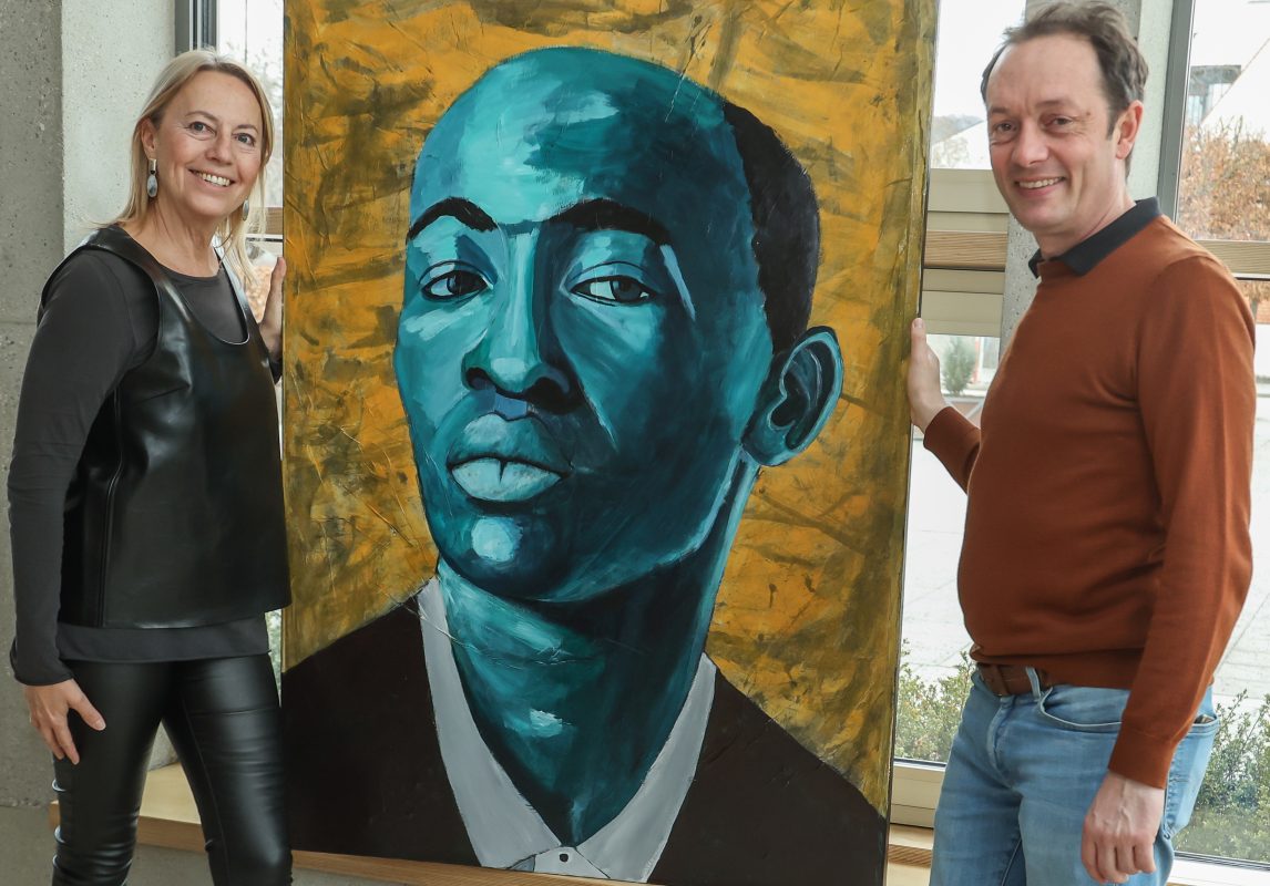 Die Künstlerin Jacqueline Hein und Kulturreferent Hans-Hermann Weinen im Rathaus Herrsching.