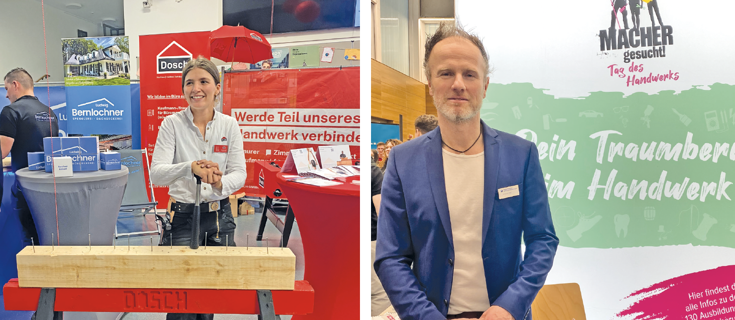 Ein anschauliches Beispiel für diese vielfältigen Wege ist Veronika Müller. Die 24-Jährige arbeitet als Zimmerin bei Bau- Dosch und war ebenfalls vor Ort. „Ich habe während Corona Abitur gemacht und meine ursprünglichen Studienpläne erst einmal auf Eis gelegt“, erzählt sie. Nach einem Praktikum folgte die Ausbildung zur Zimmerin – ein Schritt, den sie bis heute nicht bereut. „Der Beruf macht mir unglaublich viel Freude. Ich liebe die Abwechslung und das Arbeiten mit den Händen.“ Inzwischen hat sie ergänzend ein Studium begonnen und schätzt besonders die Kombination aus Theorie und Praxis: „Genau diese Mischung macht für mich den Reiz aus.“ Neben dem Handwerk präsentierten sich zahlreiche weitere Aussteller aus ganz unterschiedlichen Bereichen – darunter BMW, Webasto, das Deutsche Zentrum für Luft- und Raumfahrt, die Bundespolizei, die Agentur für Arbeit, regionale Banken, Pflegeeinrichtungen, Schulen und Fachoberschulen sowie kreative und touristische Betriebe. Zahlreiche Besucherinnen und Besucher nutzten die Gelegenheit, sich direkt im persönlichen Gespräch über Ausbildungsberufe, Praktika, schulische Wege und Zukunftsperspektiven zu informieren. Der Berufsinfoabend zeigte einmal mehr: Die Region rund um Herrsching bietet jungen Menschen eine beeindruckende Bandbreite an Möglichkeiten – man muss sie nur kennenlernen.