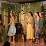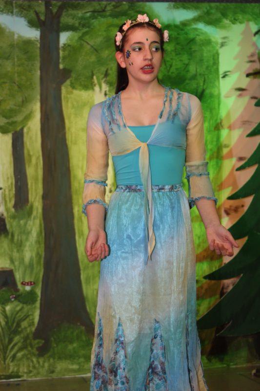 Inhaltlich entführt „Die Träne der Elfe“ die Zuschauerinnen und Zuschauer in ein geheimnisvolles Elfenreich – voller Magie, Rituale und berührender Momente. Doch das Reich ist in Gefahr, denn der böse Zauberer Huligut will es sich zu eigen machen. In dem Märchenspiel von Helmut Kuhlhanek versucht Huliguth, gespielt von Puca Ponsa, den magischen Stein „Die Träne der Elfe“ zu stehlen, mit dem es ihm gelingen würde, die Elfen zu unterwerfen. Derweil menschelt es: Elfenkönig Blubb, dargestellt von Matti Keifenheim, muss nicht nur versuchen, sein Reich zu retten, sondern hat es auch noch mit einer Liebesbeziehung zwischen einer seiner Elfen und einem menschlichen Hirtenjungen zu tun… Besonders poetisch: Das Stück zeigt, wie Elfen geboren werden. Ein zentrales Element ist dabei der mystische Gesang, der nötig ist, um neues Elfenleben entstehen zu lassen. Hierbei wurde Theater ganz nahbar – denn vor allem die vielen jungen Besucher durften aktiv mitmachen und stimmten begeistert in den Gesang ein. So wurde aus Zuschauen echtes Miterleben, und der Moment, in dem Elfe Elis aus der Blüte entstieg, sorgte bei den kleinen Theatergästen für Staunen und leuchtende Augen.