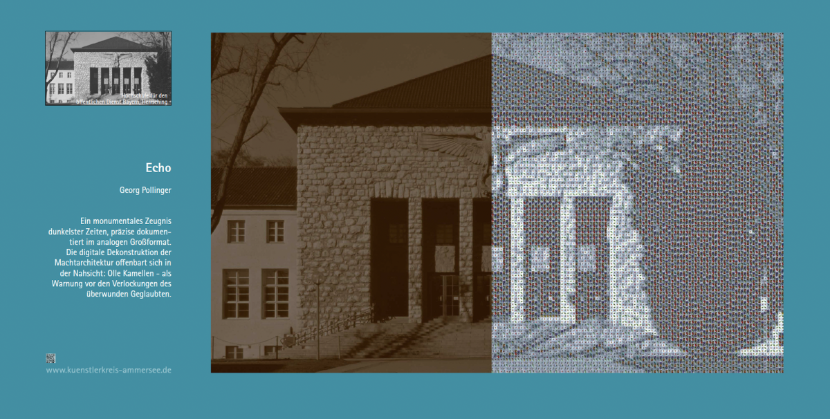 Ob bunte Fantasiewelten an der Seepromenade, utopische Architekturvisionen oder stille Dialoge zwischen Bildfragmenten – jedes Banner erzählte seine eigene Geschichte, basierend auf realen Fotografien Herrschinger Orte.