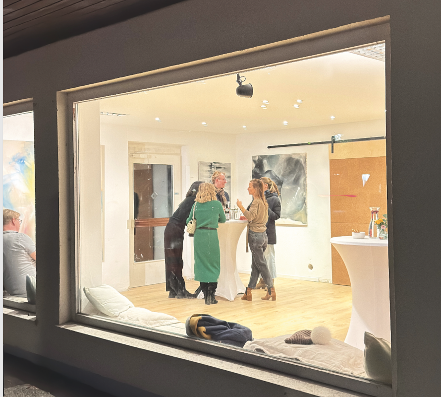 Schon von draußen lockte das gemütliche Get Together in die Vernissage
