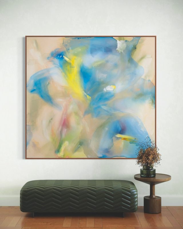 Thematisch zieht sich ein Motiv durch nahezu alle Arbeiten von Sarah Banis: Wasser. Es ist mehr als ein visuelles Element – es ist Haltung und Philosophie zugleich. „Wasser steht für Ruhe, für Bewegung und für das Unvorhersehbare. Genau diese Eigenschaften versuche ich gerne auf die Leinwand zu übertragen“, so Banis, die von dem Element künstlerisch ebenso fasziniert wie inspiriert ist. „Die Wirkung des Wassers auf Farbe und Struktur ist nie vollständig kontrollierbar – jedes Bild entwickelt sich im Prozess, manchmal überraschend, manchmal fast meditativ. So entstehe Kunst, die sich dem Moment hingibt und Raum für Interpretation lässt – eine kleine Wundertüte“. Dazu schmunzelt Banis. „Genau wie das Leben“.